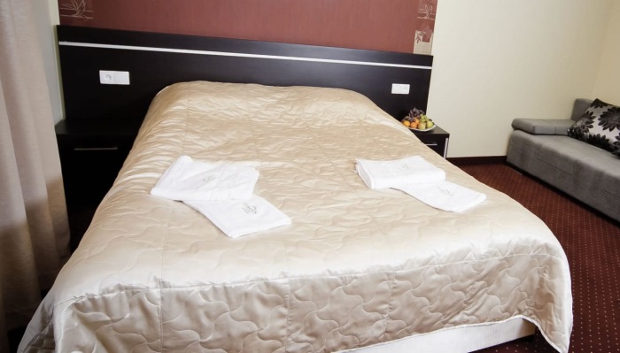 Szczególną popularnością cieszy się Apartament Premium, który składa się z oddzielnej sypialni oraz pokoju dziennego z wygodną, dwuosobową sofą. Co ważne dla osób ceniących niezależność, apartament ten posiada w pełni wyposażony aneks kuchenny. Dla rodzin przygotowano również dedykowane pokoje rodzinne z dużymi łóżkami małżeńskimi. Wysoki standard wykończenia, dbałość o detale oraz nowoczesne wyposażenie sprawiają, że każdy poczuje się tutaj wyjątkowo, bez względu na długość pobytu.